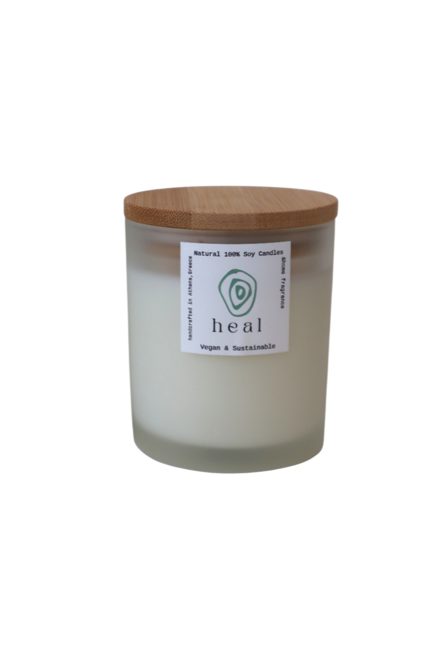 100% φυτικό κερί σόγιας και πιστοποιημένα αρωματικά έλαια, προσφέρει καθαρή, ήρεμη καύση και μεγάλη διάρκεια. Το frost γυάλινο δοχείο με ξύλινο καπάκι προσθέτει minimal αισθητική, τονίζοντας την κομψότητα και τη φυσική απλότητα του κεριού.