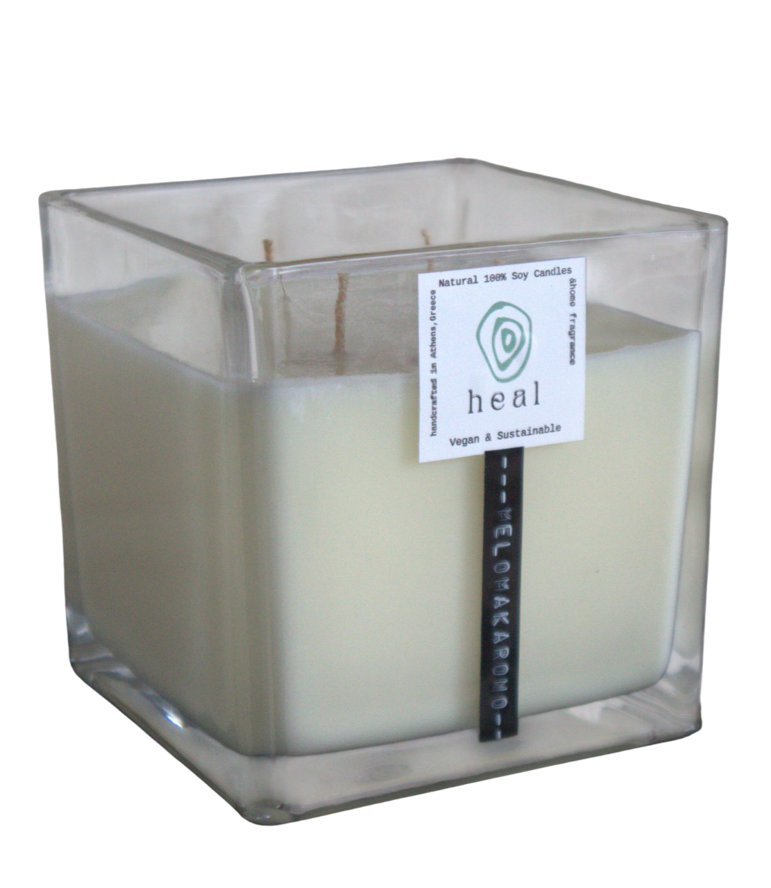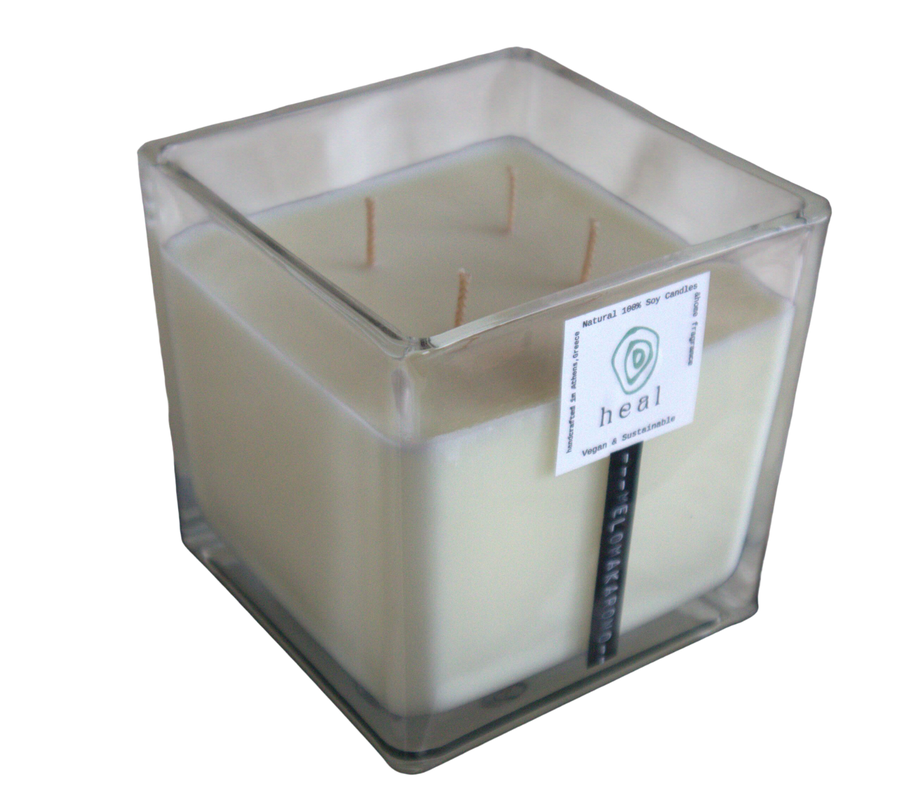 Καθαρό βάρος κεριού 1 κιλό σε τετράγωνο δοχείο, φτιαγμένο από 100% φυσικό κερί σόγιας με 4 βαμβακερά φυτίλια που εξασφαλίζουν ομοιόμορφη και σταθερή καύση, με μακρά διάρκεια και ένταση αρώματος.